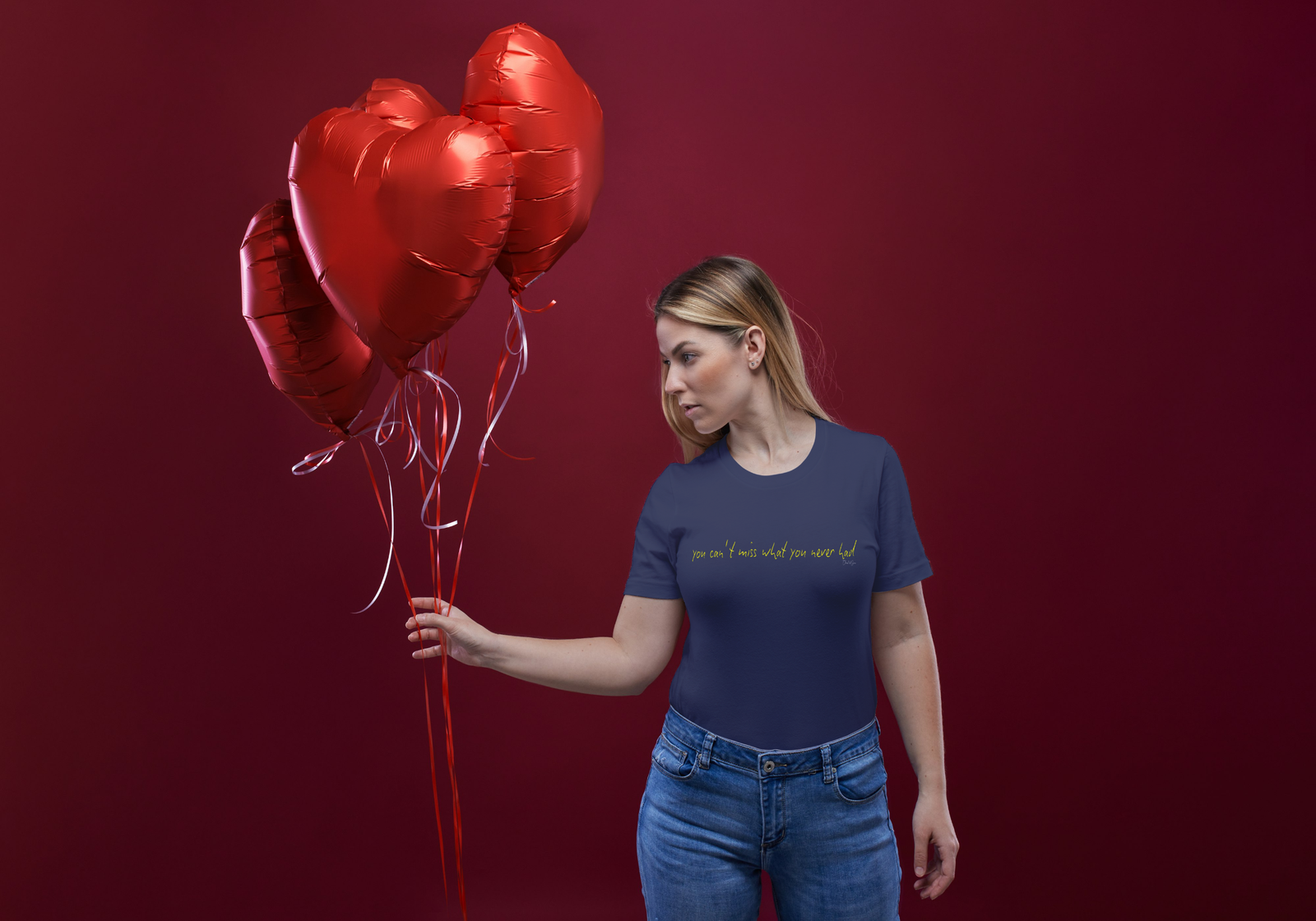 Make an impression with a statement that invites conversation. The ‘You can’t miss what you never had’ women’s t-shirt showcases a dynamic stroke-style design—rendered in vibrant bright yellow text for darker or muted shade tees, and in a rich red wine hue for soft coloured options. This playful yet impactful message is perfect for those who embrace life’s journey and always look forward to what lies ahead.